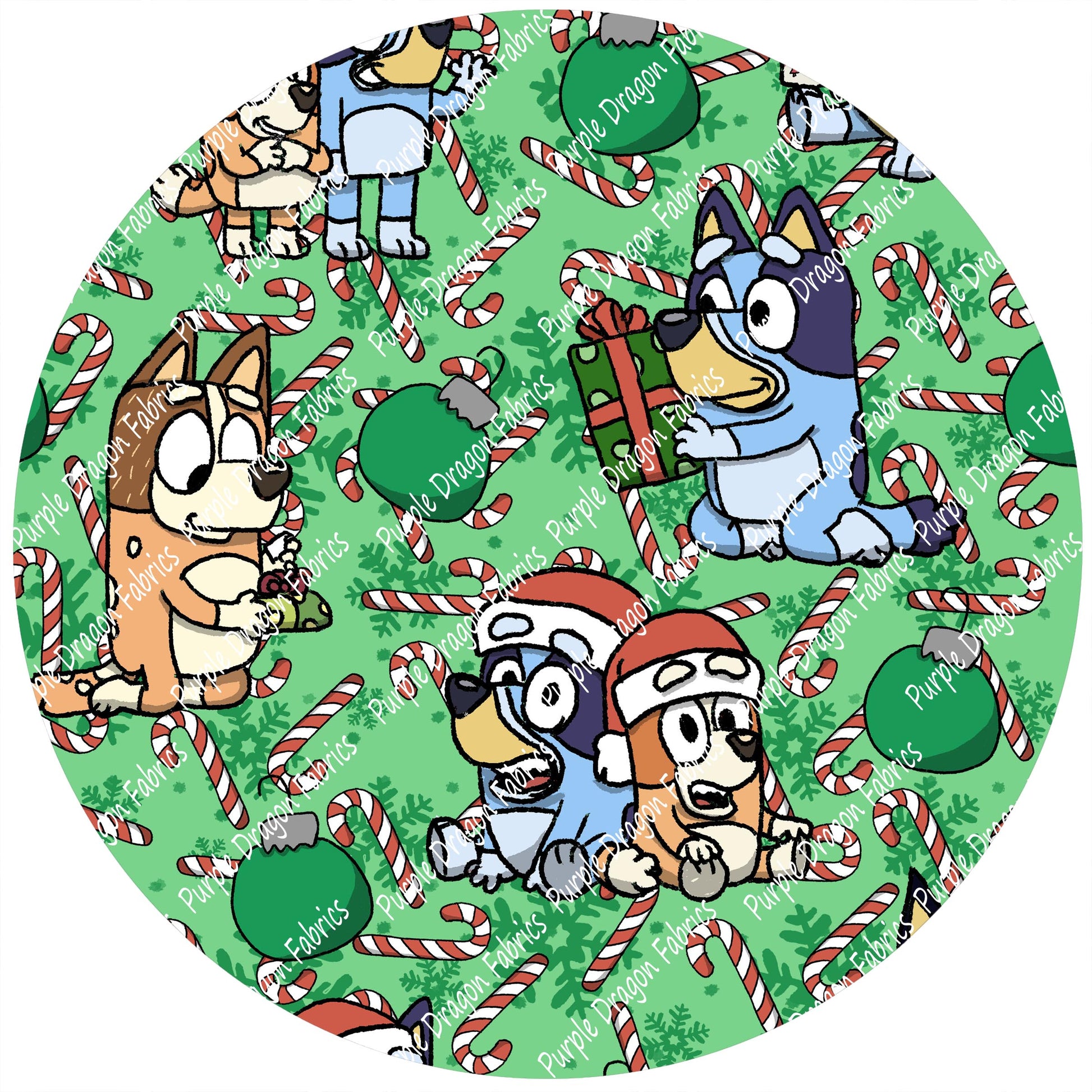 ** Please note that coloring may differ slightly between fabric bases due to different fabric composition (cotton vs polyester) and different printing processes. Coloring can also vary slightly between runs, so a fabric from a previous year may not perfectly match a newer printing.**